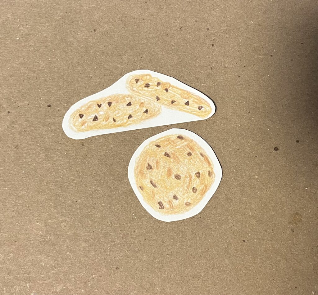 For my drawings, I decided to do one blueberry muffin and one single blueberry. I positioned all of my elements on the page and once I decided on an arrangement that I liked, I glued them down.