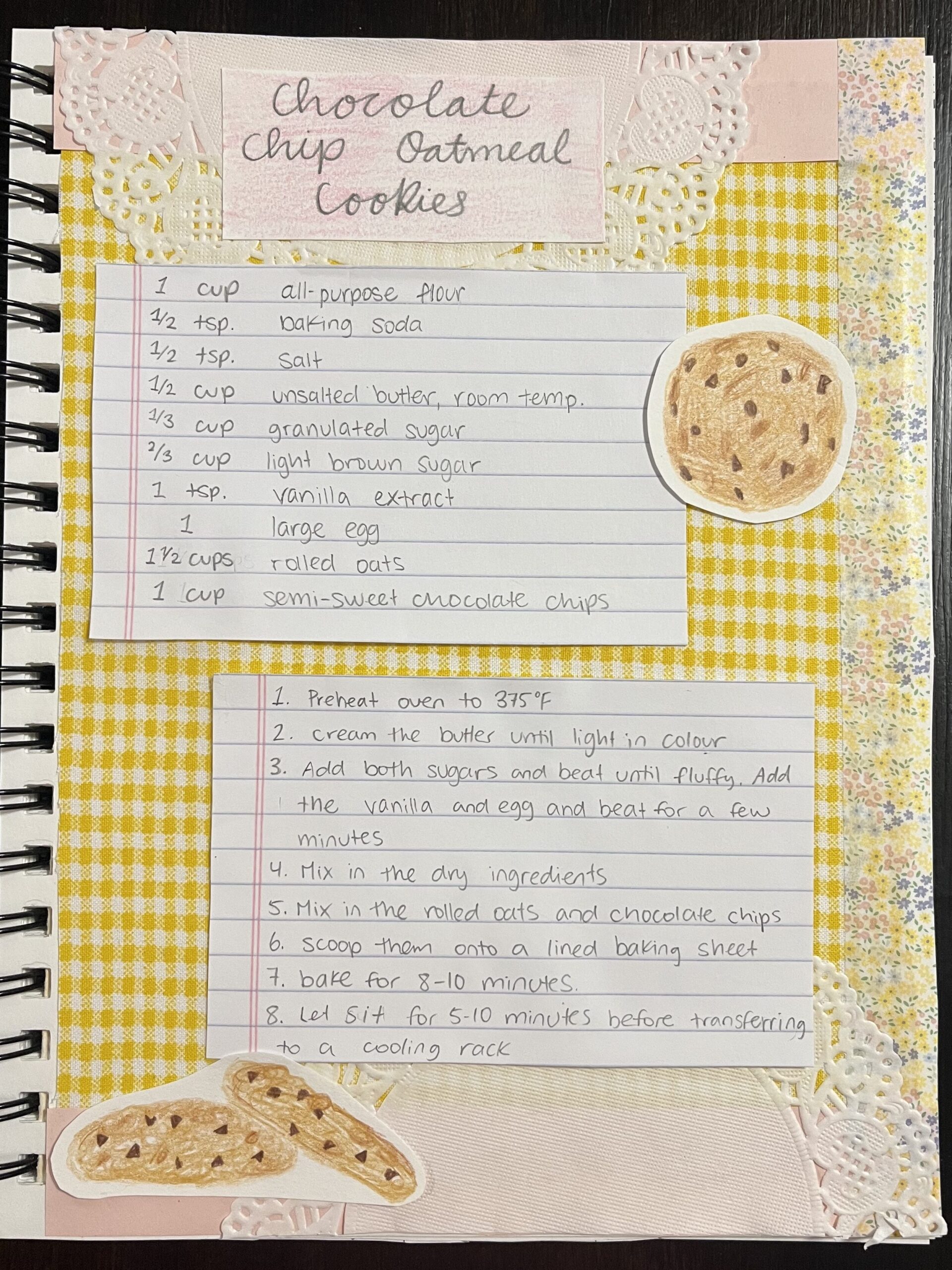 I’m really happy with how the page turned out and I am definitely going to use more patterns from the cookbook for future pages. The muffins turned out great as well! Next week, I will be making a year-round favourite of mine: Apple Crisp!